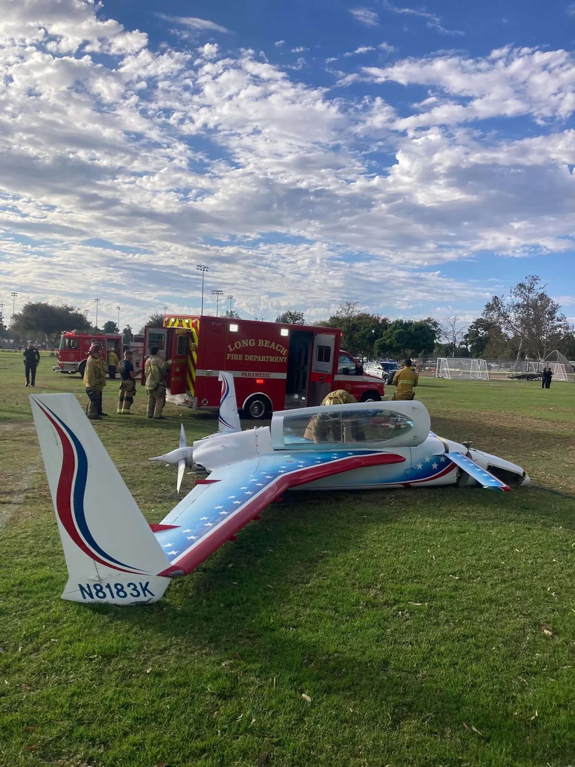 На момент прибытия спасательных служб самолет оказался на земле на боку, с поврежденными колесами, однако фюзеляж остался целым. При приземлении он столкнулся с пешеходом, находившимся в парке. Пилот, который пока не идентифицирован, описан как пожилой мужчина. Женщина-пешеход, возраст которой около 40 лет, также была доставлена в больницу.